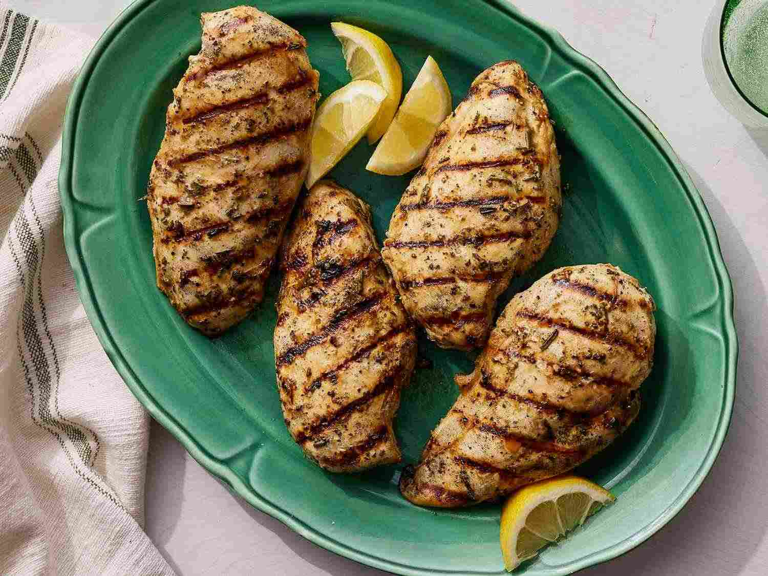 Stir lemon juice, garlic, oil, rosemary, salt, pepper, and mustard together in a bowl until well combined. Using a fork, prick each chicken breast all over 8 to 10 times. Dotdash Meredith Food Studios